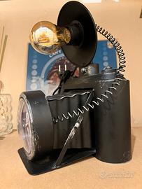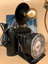 Vendo particolare lampada da tavolo con orologio integrato, realizzata in stile fotocamera vintage.