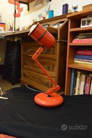 Lampada da tavolo/scrivania vintage Cosmo Italy rossa. Design anni '70 di Original Erazio Lighting Italy. Questa piccola lampada compatta è una bella aggiunta ad un interno retrò. La lampada perfetta per la scrivania o il tavolino. Una base rotonda in metallo costituisce la base di questa lampada. Due cerniere regolabili del braccio della lampada consentono di posizionare la lampada in varie posizioni. Anche il paralume cilindrico può essere orientato a piacimento. Adesivo del marchio presente (all'interno del paralume)