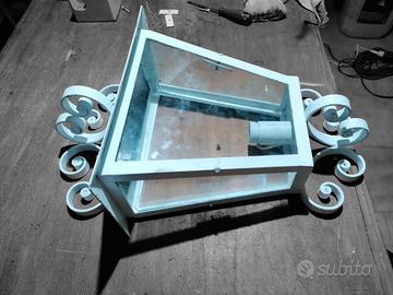 Lampada vintage in ferro con vetri. Restaurata, misure 60x45 cm.. Spedizione in tutta Italia