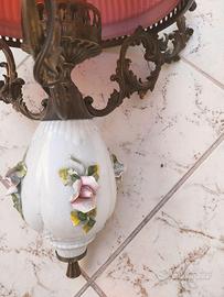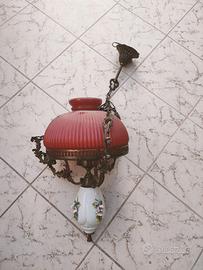 Lampada vintage in porcellana, vetro e ferro completamente funzionante. Prezzo trattabile. Ritiro a carico dell'acquirente e in loco.