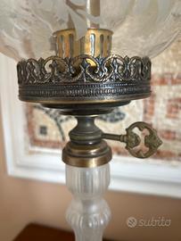 Lampada vintage da tavolo, stile a olio. Lampada classica di ottone e paralume in vetro. Antica. Piccolissimo difetto mostrato in foto. Ritiro a domicilio. Contattare se interessati, solo ritiro e pagamento da vicino