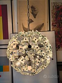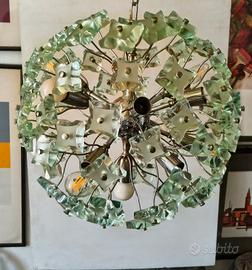 Una lampada Zero Quattro, anni '70. Diffusori costituiti da elementi in vetro Verde Nilo martellato di grande spessore e struttura vetri sono in ottime condizioni originali. consegna disponibile per Genova e La Spezia