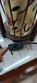 Vendo lampada da tavolo artigianale, con cornice in legno di bambù e paralume decorato con fiori naturali pressati. Stile rustico/vintage, perfetta per arredamenti caldi e naturali.