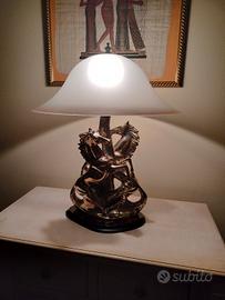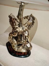 lampada vintage art decò lampada da tavolo con scultura di cavalli in argento paralume in vetro smerigliato
