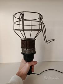 lampada vintage industriale da ispezione o da laboratorio, misure 33 cm altezza, gabbia in ferro diametro 14 cm.