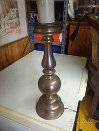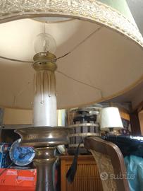 lampada da tavolo con base in ottone e paralume in tessuto verde altezza totale 80 cm funzionante e cen tenuta