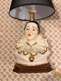 Raffinata lampada da tavolo vintage raffigurante il busto di Pierrot, un’icona del design romantico degli anni '70/'80.
