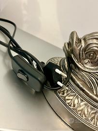 Bellissima base per lampada vintage recuperata e ricondizionata . Si tratta di una lampada da tavolo antica o vintage colore argento, caratterizzata da una base decorativa con putti che cavalcano un pesce o un delfino. come si può vedere dalle foto pochi segni del tempo quasi inesistenti ; oggi in perfette condizioni di funzionamento