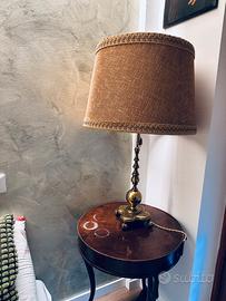 lampada da tavolo vintage in ottone con base profilata e paralume in tessuto. Ritiro solo a mano. Zona Roma Eur