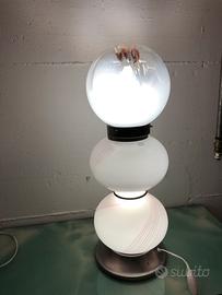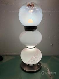 Lampada da appoggio vetro Murano, base cromo e vetro con illuminazione interna, sfera superiore vetro con illuminazione interna, cablaggio revisionato. Arreda con gusto tutti gli ambienti della casa. Ideale anche per spazi commerciali espositivi, vetrine, negozi. Si puó visionare a Concesio da Santoro Concept via Europa, 254