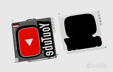 Design ispirato al celebre logo YouTube, stampato in 3D con grande attenzione ai dettagli.