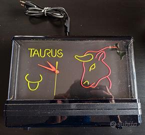 Questo oggetto è un orologio al neon vintage prodotto da Geminii Display negli anni '80, dotato di un segno zodiacale illuminato.