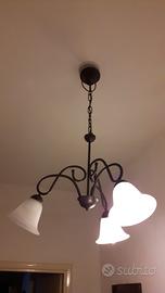 Due lampadari a 3 luci o singola. oUno con struttura in legno (foto 1,2,) con bracci in ferro e con 3 campane in vetro fino trasparente e decorato Costo = 20 euro oL'altro con struttura in ferro (foto 3,4) colore blu di persia con 3 campane in vetro spesso e satinato Costo = 30 euro oLampadario con luce singola con paralume satinato e decorato Misure: Lunghezza 83 cm (foto n.5,6) Costo =10 euro Se sei invece interessato ai paralumi puoi cliccare sul mio nome e vederli tra i miei annunci online. Potresti trovare anche qualcos'altro di tuo interesse chissà. Tutti gli articoli sono in ottime condizioni. Il prezzo dell'annuncio si riferisce al solo lampadario della foto n 5,6. Per la consegna a mano è possibile a Roma in zona Monte Cervialto e Jonio. Posso spedire. È possibile usufruire dell'offerta di spedizione di InPost a 0,99 cent quando viene proposta. Anche se l'offerta di spedizione di InPost non compare nell'annuncio ti dico io come fare. Mettilo tra i tuoi preferiti sarò io a contattarti se sarai ancora interessato.