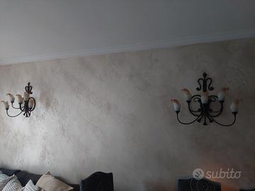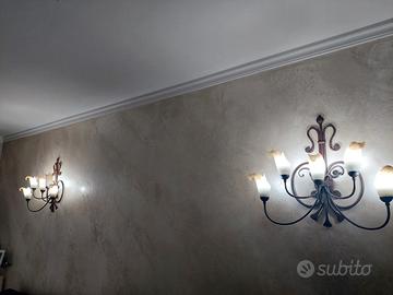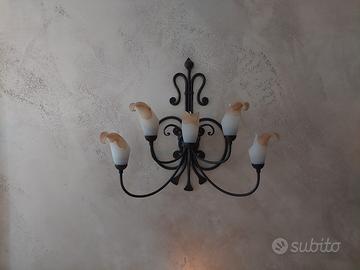 lampadari a parete in ferro battuto molto originali con calle in vetro in tinta col colore del ferro a 5 luci