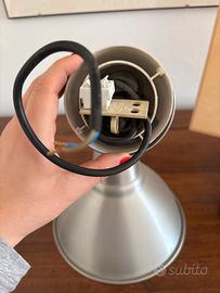Vendo coppia di lampadari a sospensione stile industriale in alluminio satinato. Diametro 25 cm. Non spedisco, solo scambio a mano.