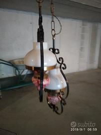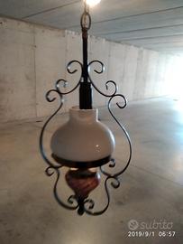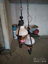 causa inutilizzo vendo 2 lampadari antichi in ferro battuto, ceramica lavorata e vetro. ritiro in loco.