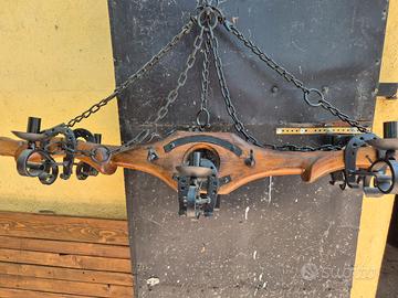 vendo lampadari ricavati da una vecchia ruota di carro, da un giuoco per buoi e un giuoco per cavalli. Ideali per tavernetta o padio. euro 150 l'uno se acquistati tutti e tre 400 euro.