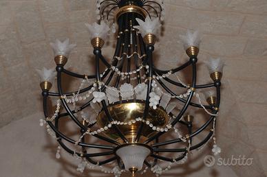 Vendo 3 lampadari di 1,20 circa di diametro, con struttura in ferro e grappoli di vetro.