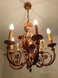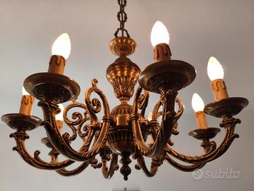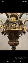 vendo 5 splendidi lampadari in ottone ( uno in ceramica dipinto a mano) provenienti da villa di famiglia benestante costruita arredata e mai abitata. Pezzi davvero unici, a chi piace il genere sono un capolavoro. Peso importante per il primo in foto (2 pezzi), circa 35 kg l'uno.