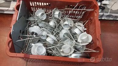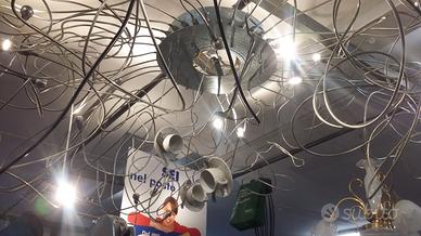 bellissimi lampadari per bar commerciale a 32 bulbi con 96 luci led 3 led per ogni bulbo , con tubo alluminio flessibile larghezza mt. 3 circa con tubo alluminio e 16 tazzine modellabile, sono 2 lampadari e 3 applique uguali, in vendita anche singolarmente per ulteriori foto contattarmi spedizione in italiaa carico dell'acquirente