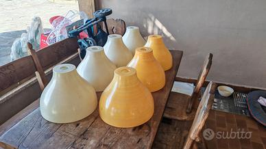 Vendo n. 7 lampadari da soffito in vetro H 28cm largo 33cm lavorati a mano come da foto. Ritiro in loco no spedizione zona Bergamo