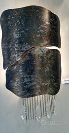 Lampadario a soffitto e applique in corten argentato, oggetti di design Made in Italy