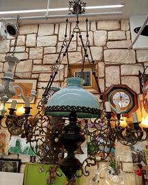 Lampadario Liberty 7 luci - struttura in bronzo e ottone - vetri originali in perfette condizioni. Misure diametro 90cm - altezza ( ovviamente allungabile con catena) 80cm - Lampadario inizi 900' Liberty a 7 luci - struttura in bronzo e ottone - rivestimento in tessuto originale - 3 vetri trasparenti e 3 satinati. Ottimo stato. Misure altezza 110 cm - diametro 90 cm - Lampadario ottone e vetro opalino epoca Liberty 10 luci - misure massime 70 x 140 cm