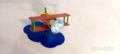 Lampade da parete a forma di aeroplano con nuvoletta, una doppia e una singola per un totale di 3 punti luce. Funzionamento con faretti alogeni (inclusi)