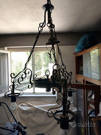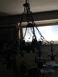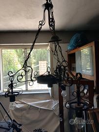 Vendo due lampadari in fero battuto... Ogni lampada ha anche la plafoniera di vetro come in foto.. non le ho montate per paura di rompere... Prezzo leggermente trattabile