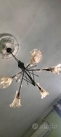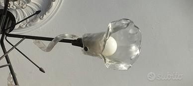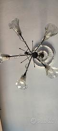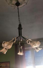 Numero due lampadari in ferro battuto con cinque luci e portalampade a forma di fiore in vetro di Murano, vendibili anche singolarmente . Il prezzo indicato si riferisce ad un singolo pezzo. Contattare solo se realmente interessati, non voglio perdere tempo
