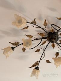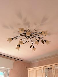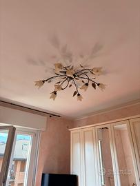 Vendo elegante lampadario da soffitto in stile classico, ideale per soggiorno, sala da pranzo o camera da letto. Struttura in ferro con finitura bronzo anticato e dettagli decorativi a foglia. Paralumi in vetro satinato a forma di fiore che diffondono una luce calda e accogliente. Il design raffinato lo rende perfetto sia per ambienti classici che per dare un tocco vintage a spazi moderni.