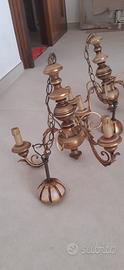 Coppia di lampadari FIORENTINI in legno e ferro battuto artigianali.