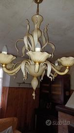 lampadari d'epoca uno in vetro di murano , uno stile liberty con cilindretti in vetro uno ferro battuto , e infine uno ottone con gocce di vetro. prezzo da concordare