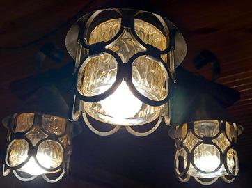 LAMPADARI IN FERRO BATTUTO E LEGNO