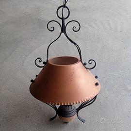 n. 2 lampadari in ferro battuto verniciato color nero e rame, ideali per rustici, taverne, mansarde.