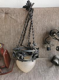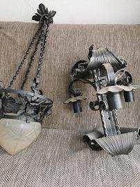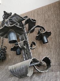 Bellissimi lampadari anni 70 in ferro battuto con porta lampade nuove.
