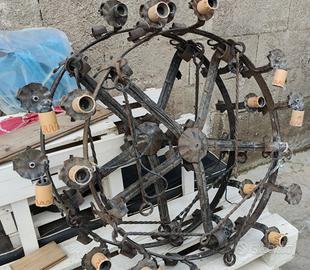 Vendo 2 lampadari rotondi in ferro forgiato a 10 lampadine ,in buone condizioni,ottimi per case rustiche,chiedo per ogni lampadario 300 euro.
