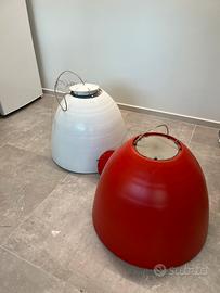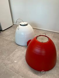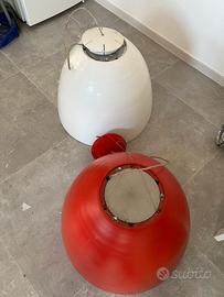 Lampadari da soffitto in metallo , in buone condizioni , uno bisnco ed uno rosso , diametro 54 cm e altezza 43cm , possibilita’ di acquistarli singolarmente , 20 euro cadauno