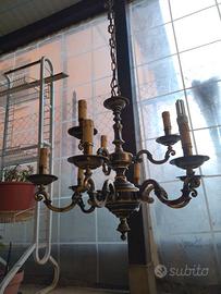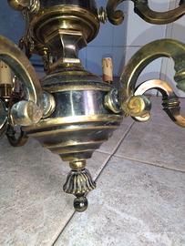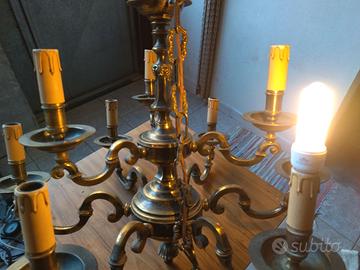 LAMPADARI DA SOFFITTO IN OTTONE PERIODO META' DEL '900 STRUTTURA IN OTTONE CON 9 BRACCI STILE CANDELABRO CANDELE.