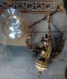 2 lampadari in ottone e vetro, misurano complessivamente 70 e 50 cm il primo 65 euro, il secondo 55 euro prezzi trattabili spedisco
