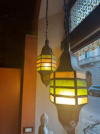 -Coppia di lanterne marocchine a soffitto vetro verde/arancio