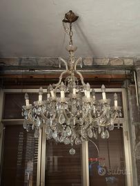 Ricchi di decorazione con pendenti in cristallo molato a goccia. Dimensioni medio-grandi, adatto a saloni, sale da pranzo o ambienti con soffitti alti.