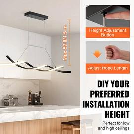 • Vendo da negozio, solo articoli Nuovi e Certificati SPECIFICHE ↓ Illuminazione regolabile e personalizzabile: dotata di telecomando a infrarossi, la nostra lampada a sospensione lineare consente di regolare la temperatura del colore da 3000K (luce calda) a 6000K (luce bianca diurna) e i livelli di luminosità dal 10% al 100%. Inoltre, puoi attivare rapidamente l'illuminazione premendo continuamente l'interruttore a parete per selezionare la temperatura del colore preferita per qualsiasi spazio. (Interruttore a muro non incluso.) Ambiente di illuminazione confortevole: illumina il tuo spazio con più chip LED ad alta luminosità che offrono un flusso luminoso elevato e una luce morbida e confortevole che non affatica gli occhi. Lo stabilizzatore integrato, con un'impressionante durata di oltre 50000 ore, garantisce un'illuminazione stabile senza sfarfallio o luminosità irregolare, creando una piacevole esperienza di illuminazione. Installazione flessibile per qualsiasi soffitto: la nostra lampada lineare è dotata di 2 corde regolabili da 1,5 m (59 pollici), che rendono la regolazione dell'altezza un gioco da ragazzi. Basta premere il pulsante nero per collegare il cavo al paralume e personalizzare l'altezza per adattarla a varie altezze e tipologie di soffitto. (Non preoccuparti, le corde sono pienamente in grado di sostenere il peso della lampada.) Elevata durata, costruita per durare: Costruita con metallo resistente, la nostra lampada a sospensione lineare garantisce una struttura stabile e robusta. La struttura in ferro nero combinata con strisce luminose intrecciate crea un flusso naturale in ogni stanza. La finitura resistente alla corrosione e allo sbiadimento garantisce una bellezza duratura, aggiungendo un tocco di eleganza rustica al tuo arredamento interno. Semplicità moderna, ampia applicazione: sperimenta la perfetta combinazione di struttura in metallo e design moderno con la nostra lampada a sospensione lineare. Ideale per illuminare e decorare