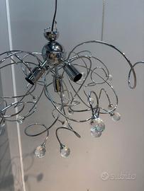 Lampadario moderno soggiorno a sospensione in acciaio cromato con swaroski ideale per il soggiorno e non solo.
