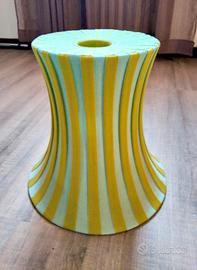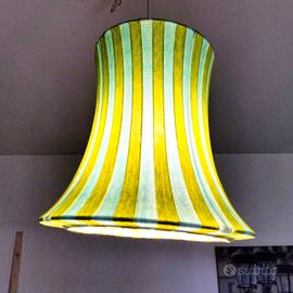 Lampadario telaio in metallo e copertura in stoffa a righe colore Verde acido e Grigio chiaro, doppia posizione del punto luce interno. No Filo