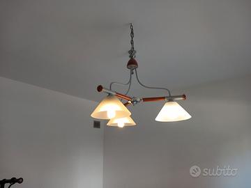 Vendesi, in perfette condizioni, lampadario in ceramica con catena in metallo bronzato € 40,00; in perfette condizioni, lampadario con finiture in metallo, legno e vetro e con catena in metallo colore grigio € 40,00; in buone condizioni, lampadario vintage in metallo e vetro € 25,00.