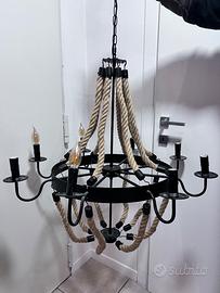 Lampadario in corda 3 luci 35€ Lampadario in corda 8 luci 60€ Lampadario 3 luci stile industriale 60€ Lampada da tavola 30€ Applique 2 luci 60€