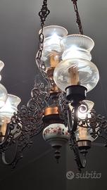 vendesi splendido lampadario in ferro battuto e ceramica, lampadario in ceramica e splendida piantana. Ritiro/ spese di consegna a carico acquirente