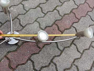 Lampadari/plafoniere a 6 faretti orientabili e 3 bracci orientabili con lampade (2 portalampada mancanti)