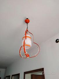 Sono due lampadari costituiti da una struttura in metallo colorato di arancio e bianco panna e una parte in vetro ( dove ha sede là lampadina. Vendibili insieme o separatamente.